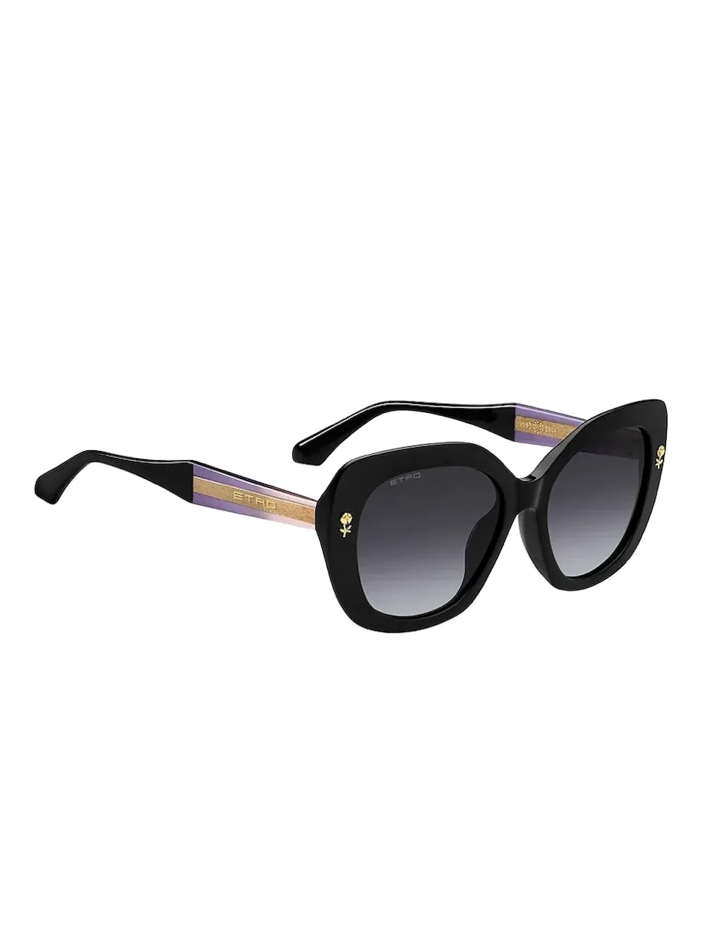 zwart geometrisch montuur verfraaid met rozen glazen met kleurverloop logo-reliëf tempel bewerkte leren hoes Deze bril wordt verkocht met een beschermhoes.