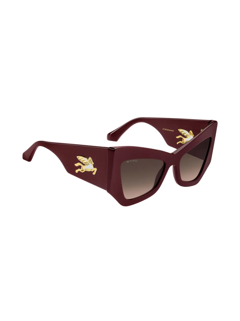 bordeauxrood acetaat cat-eye montuur glazen met kleurverloop goudkleurige hardware kenmerkend Pegaso patroon oversized pootjes gebogen uiteinden Deze bril wordt verkocht met een beschermhoes.
