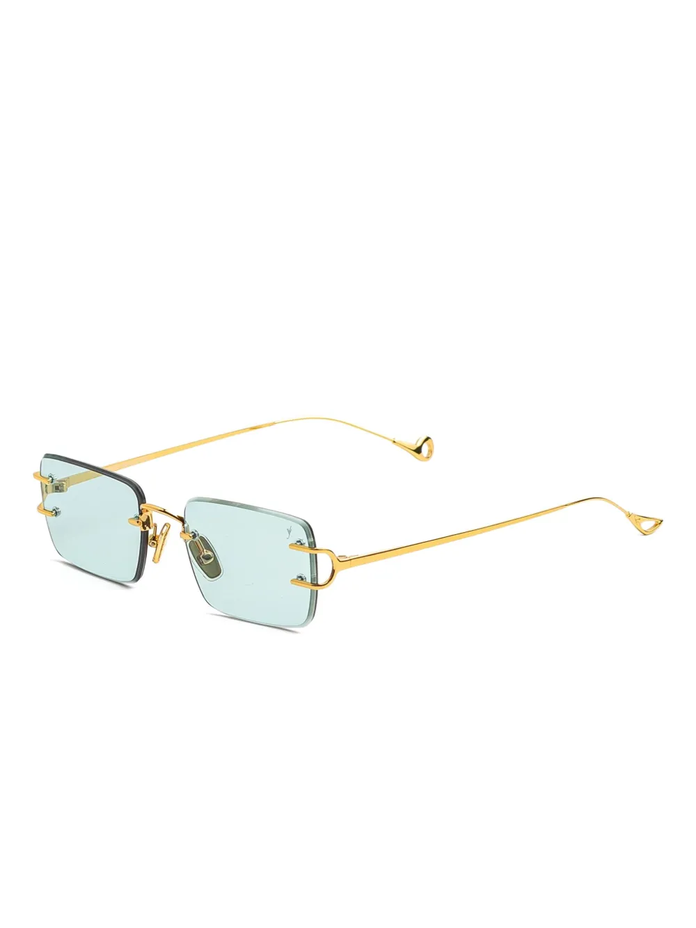 goudkleurig/lichtblauw rechthoekig montuur neuskussentjes rechte pootjes gebogen uiteinden Deze bril wordt verkocht met een beschermhoes.
