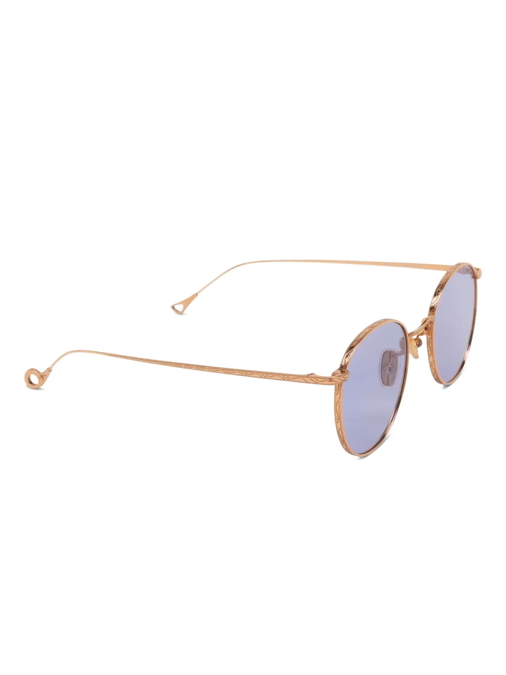 rose roze rond montuur gegraveerd detail paarse glazen dunne pootjes Deze bril wordt verkocht met een beschermhoes.