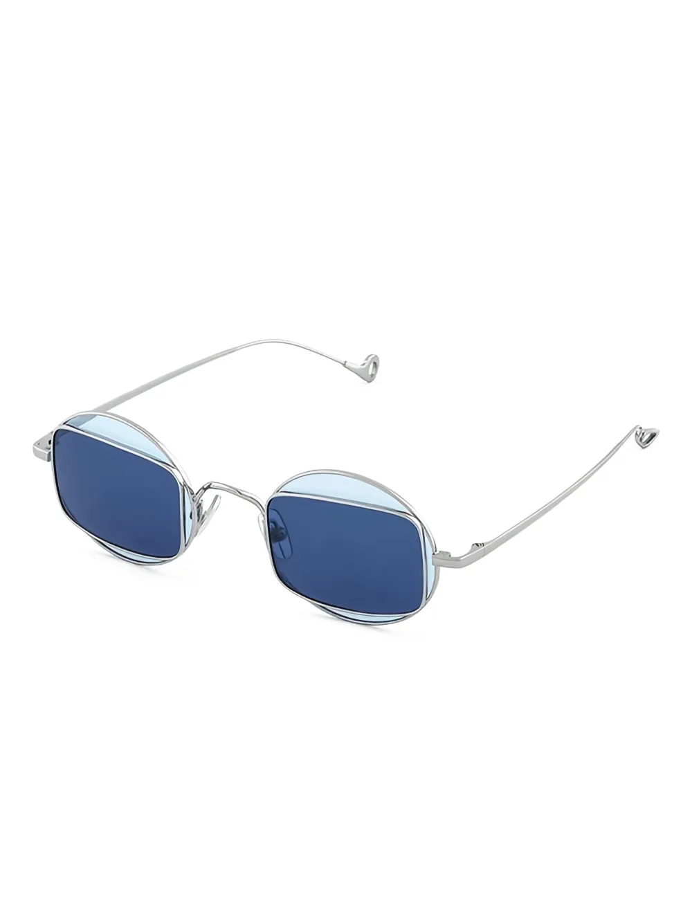 zilverkleurig blauwe glazen rond montuur Deze bril wordt verkocht met een beschermhoes.