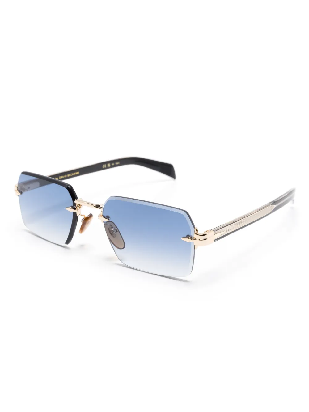 zwart/goudkleurig acetaat doorzichtig ontwerp geometrisch montuur randloze glazen blauwe glazen met kleurverloop neuskussentjes rechte pootjes gebogen uiteinden Deze bril wordt verkocht met een beschermhoes.