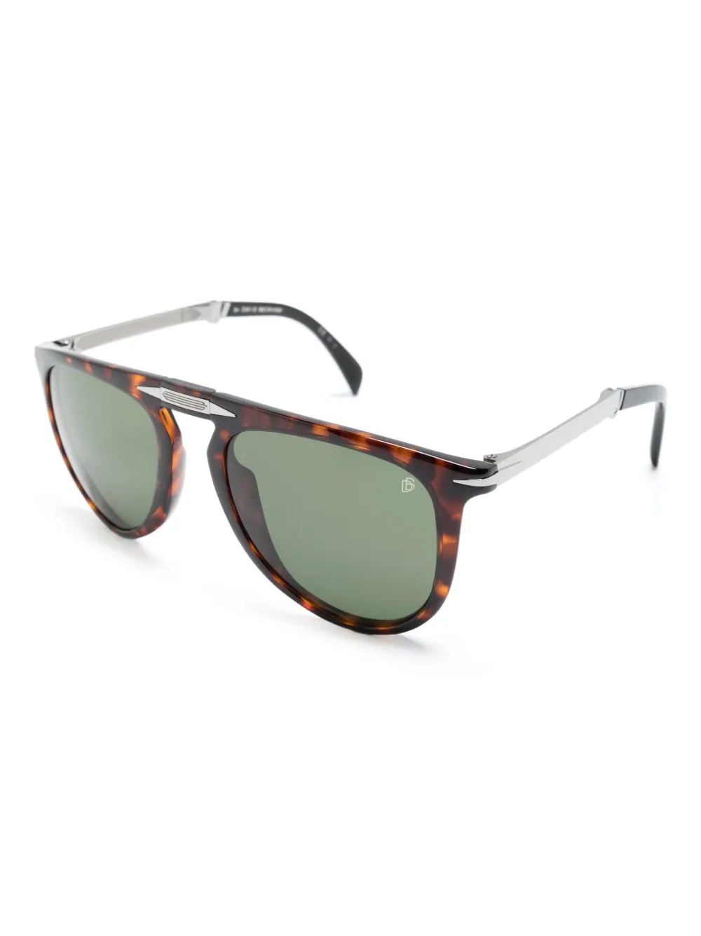 chocoladebruin acetaat schildpad montuur opklapbaar design groengetinte glazen monogramprint zilverkleurig materiaal glazen met UV-bescherming Deze bril wordt verkocht met een beschermhoes.