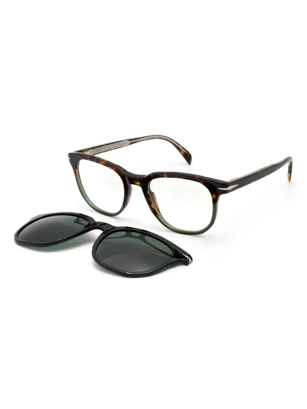 Havana bruin acetaat schildpad montuur vierkant montuur groen getinte glazen logo lens sticker rechte poten met gebogen uiteinden Deze bril wordt verkocht met een beschermhoes.