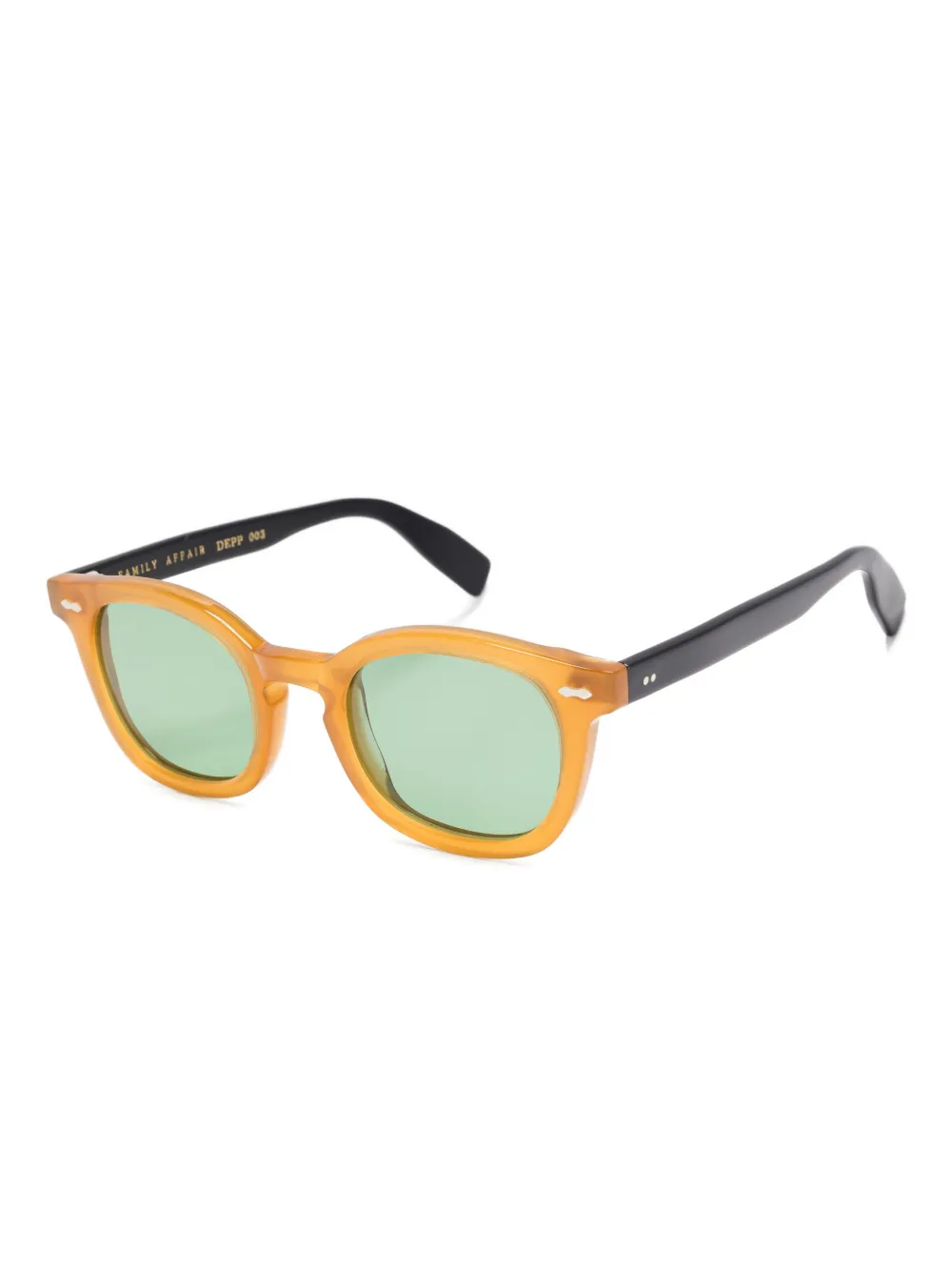 karamelbruin rond montuur groen getinte glazen zwarte tempels Deze bril wordt verkocht met een beschermhoes.