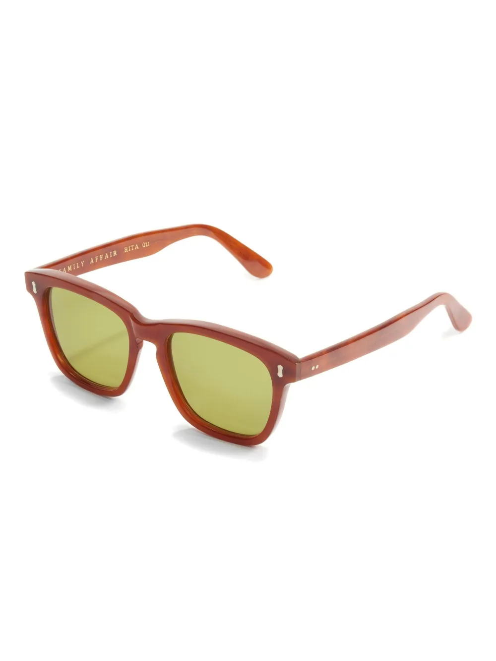 bordeauxrood vierkant montuur gekleurde glazen gebogen uiteinden Deze bril wordt verkocht met een beschermhoes.