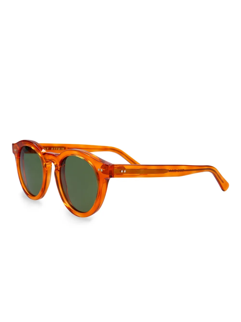 donkeroranje doorzichtig design klinknageldetails rond montuur Deze bril wordt verkocht met een beschermhoes.