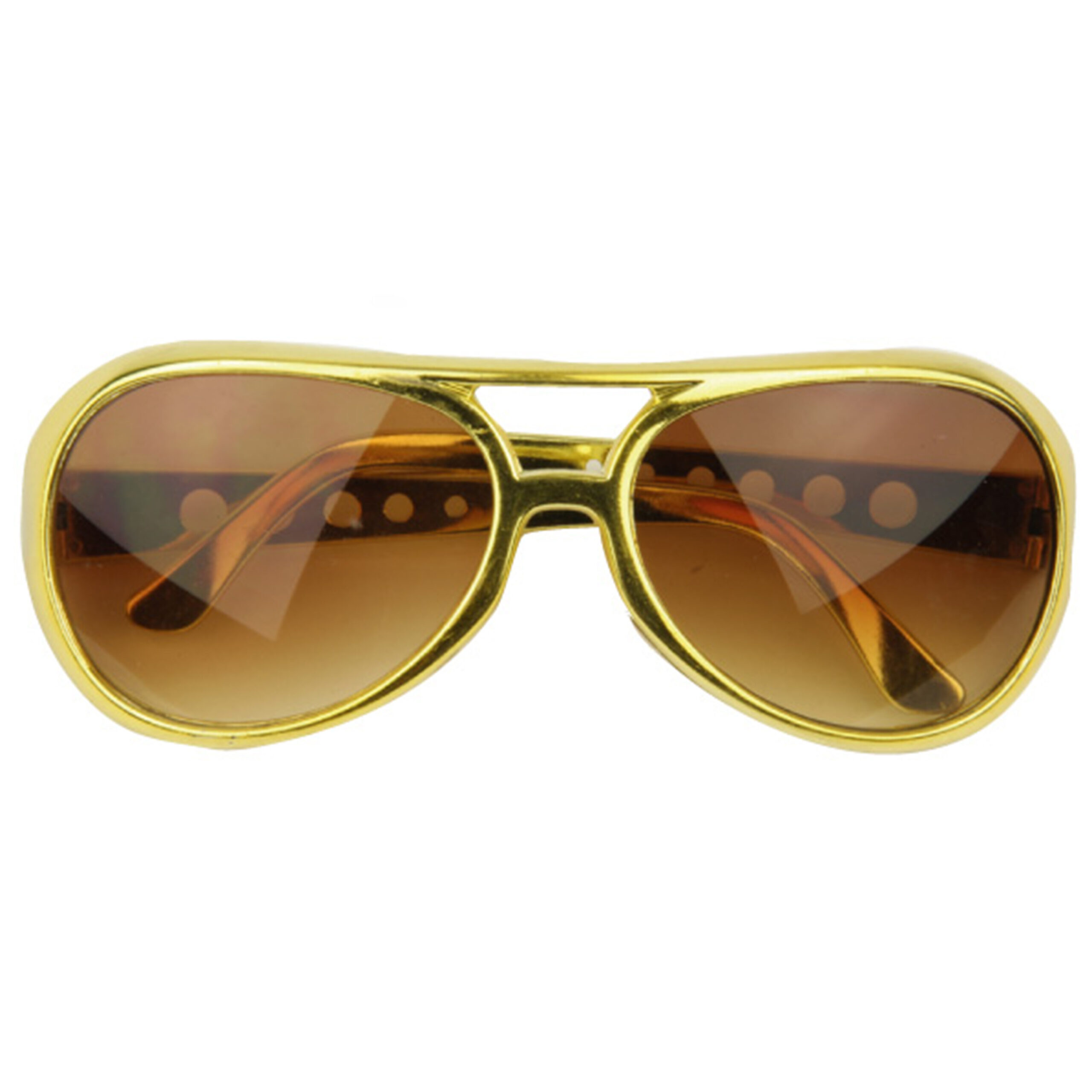 Elvis model verkleed zonnebril in de kleur goud. Materiaal: kunststof. Maak uw carnaval verkleedkleding set compleet met deze bijpassende party brillen. Geschikt voor volwassenen. Let op: dit is een verkleedaccessoire voor volwassenen, beschermt niet tegen de zon en is niet geschikt voor kinderen.