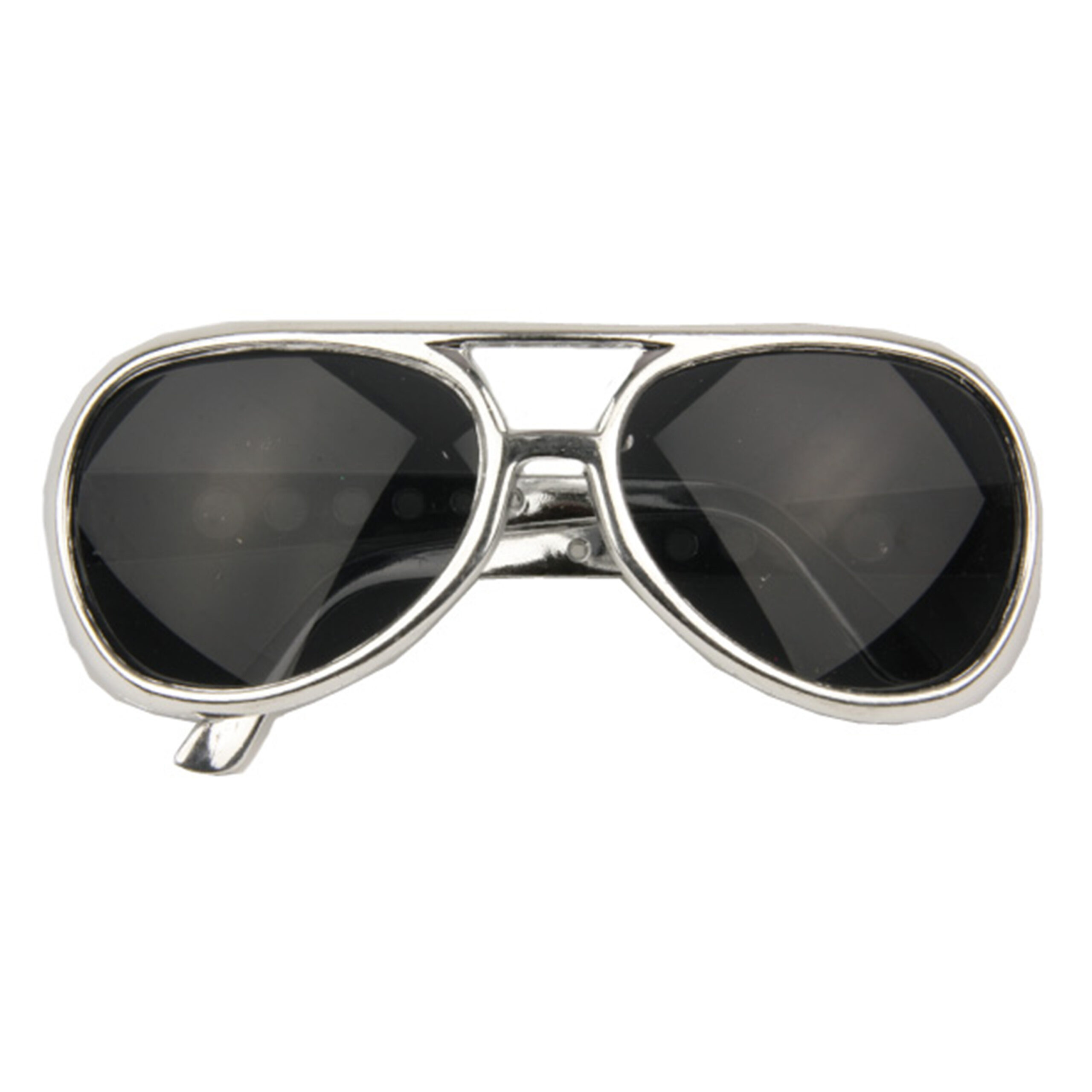Elvis model verkleed zonnebril in de kleur zilver. Materiaal: kunststof. Maak uw carnaval verkleedkleding set compleet met deze bijpassende party brillen. Geschikt voor volwassenen.