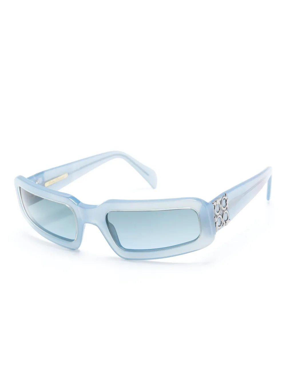 circa 2000s blauw acetaat doorzichtig design rechthoekig montuur blauwe glazen Gancini plakkaat rechte pootjes gebogen uiteinden Deze bril wordt verkocht met een beschermhoes. Staat: GOED. Dit item is eerder in iemands bezit geweest en gebruikt, maar verkeert in goede staat met minimale gebruikssporen. Dit kan vervaging van materiaal of plating en krassen omvatten.