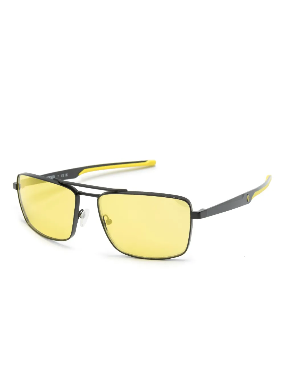 zwart/geel metaal piloten montuur gele glazen neuskussentjes logoplakkaat op de mouw rechte pootjes Deze bril wordt verkocht met een beschermhoes.