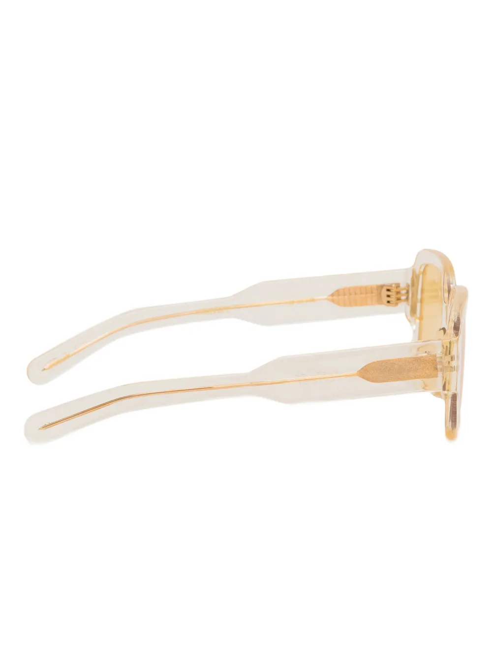 geel doorzichtig montuur goudkleurige details rechthoekig montuur gekleurde glazen rechte pootjes Deze bril wordt verkocht met een beschermhoes.