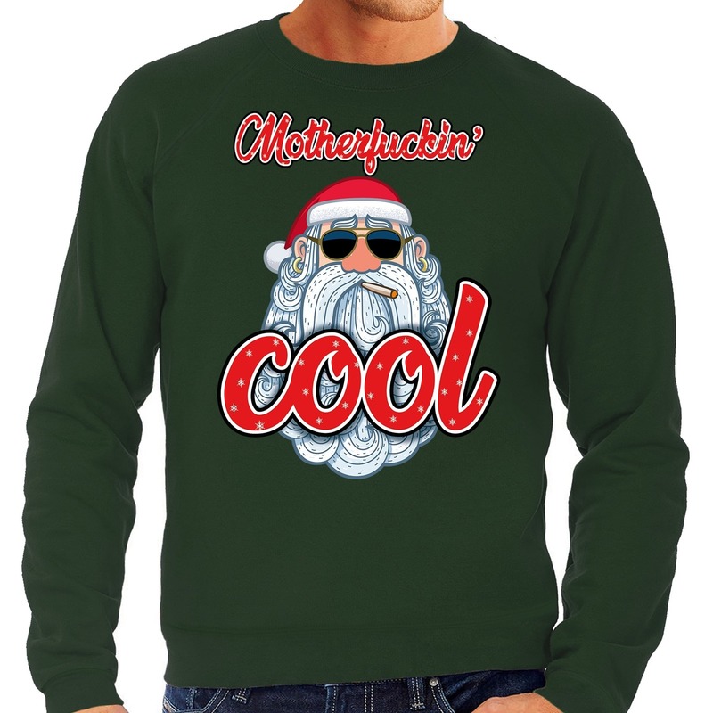 Foute Kersttrui stoere kerstman motherfucking cool groen heren