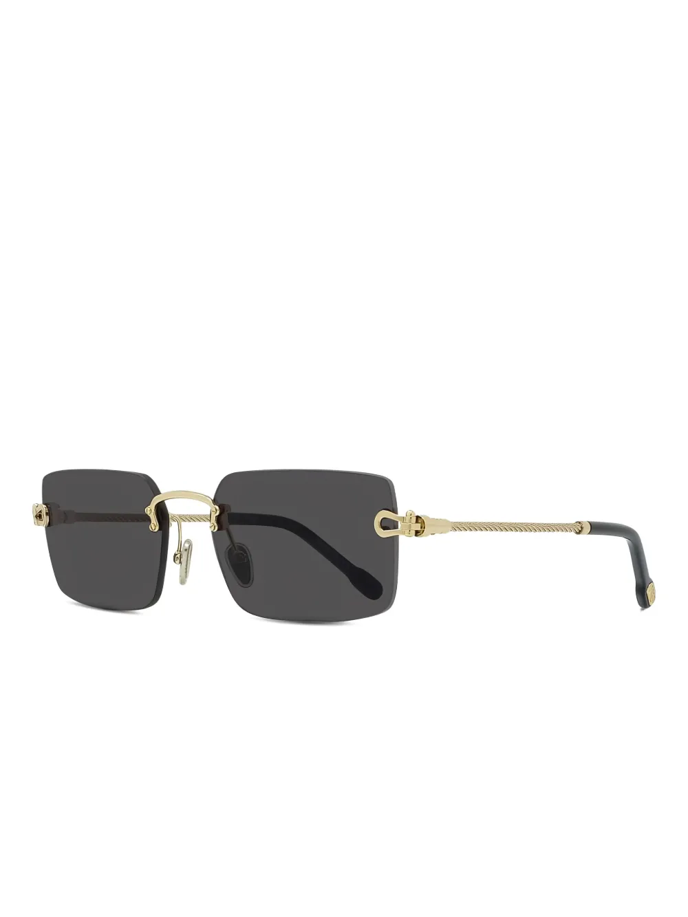zwart randloos design touwdetail rechthoekige vorm donkergrijze glazen Deze bril wordt verkocht met een beschermhoes.
