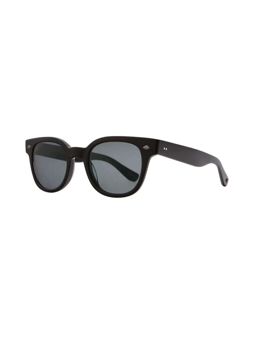 zwart acetaat rond montuur grijze glazen rechte pootjes gebogen uiteinden Deze bril wordt verkocht met een beschermhoes.