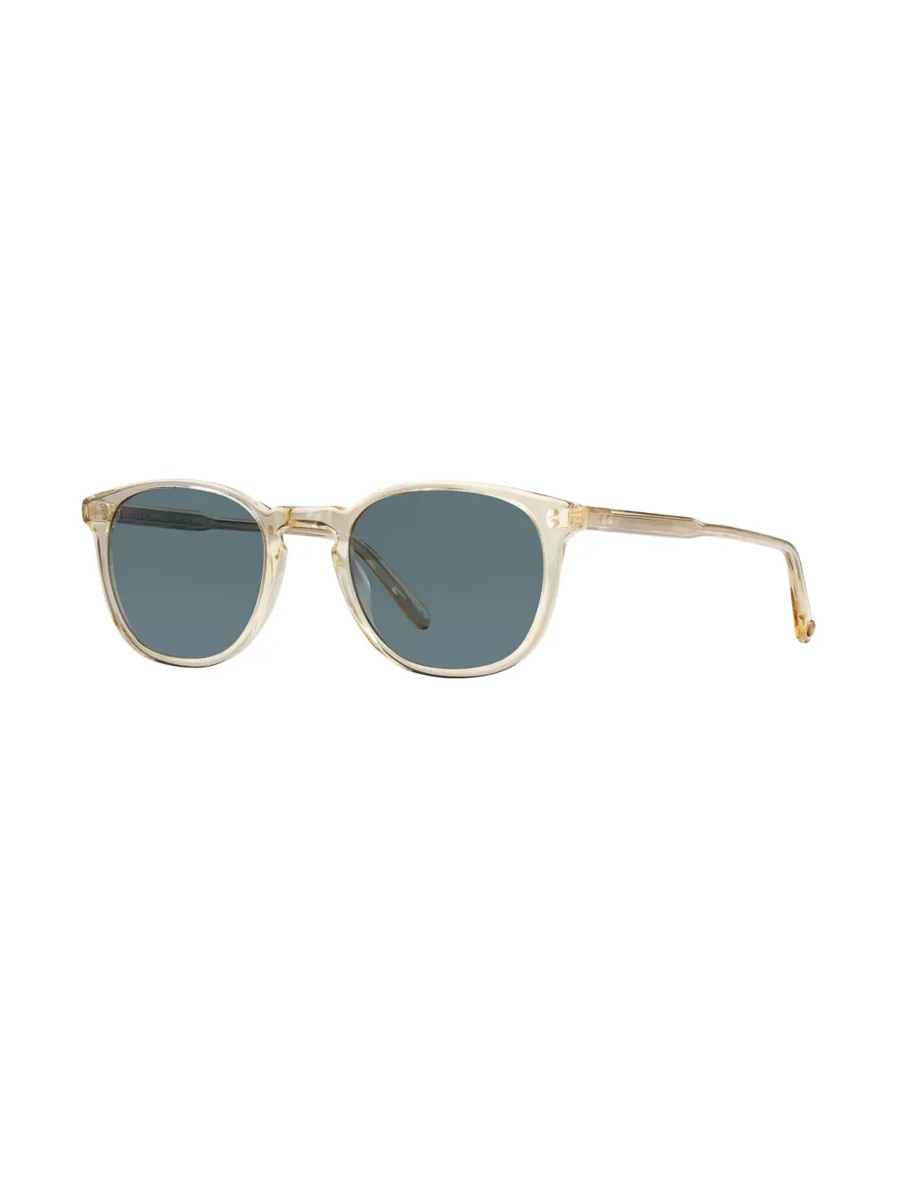 goudkleurig acetaat rond montuur blauwe glazen neuskussentjes gebogen uiteinden pootjes met gegraveerd logo Deze bril wordt verkocht met een beschermhoes. Als je dit uniseks item wilt kopen, wees je ervan bewust dat het matensysteem voor heren wordt gebruikt.