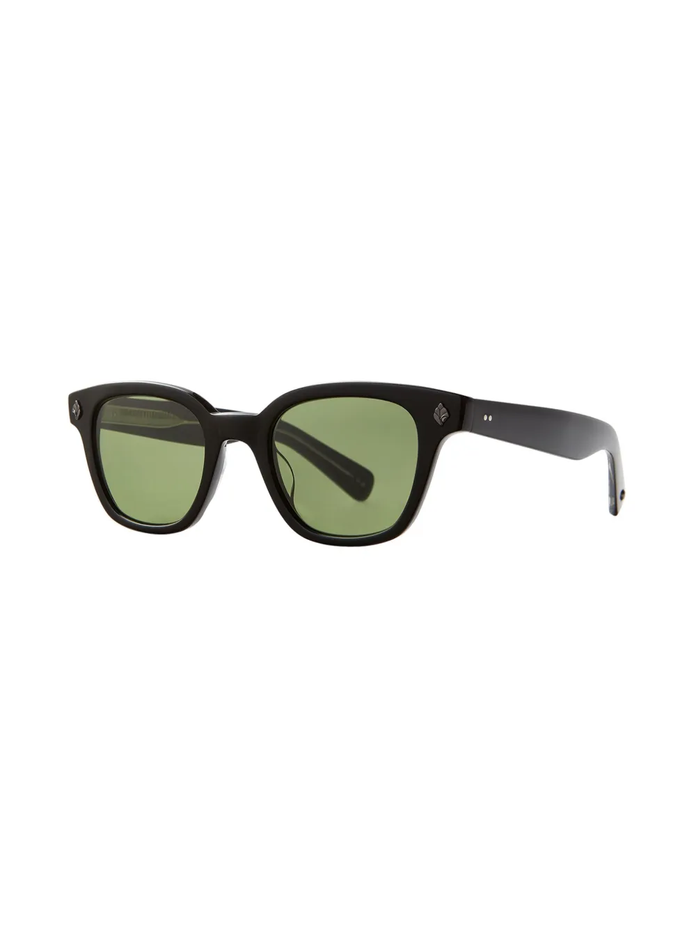 zwart roestvrij staal acetaat geometrisch montuur groen getinte glazen glazen met UV-bescherming logoprint op het pootje rechte pootjes gebogen uiteinden Deze bril wordt verkocht met een beschermhoes.
