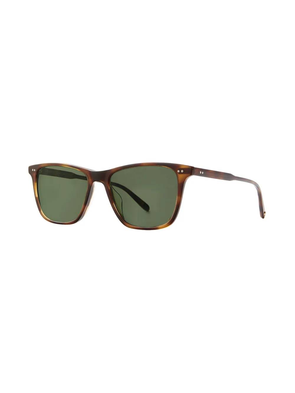 bruin acetaat schildpad montuur vierkant montuur groen getinte glazen glazen met UV-bescherming logoprint op het pootje rechte pootjes gebogen uiteinden Deze bril wordt verkocht met een beschermhoes.