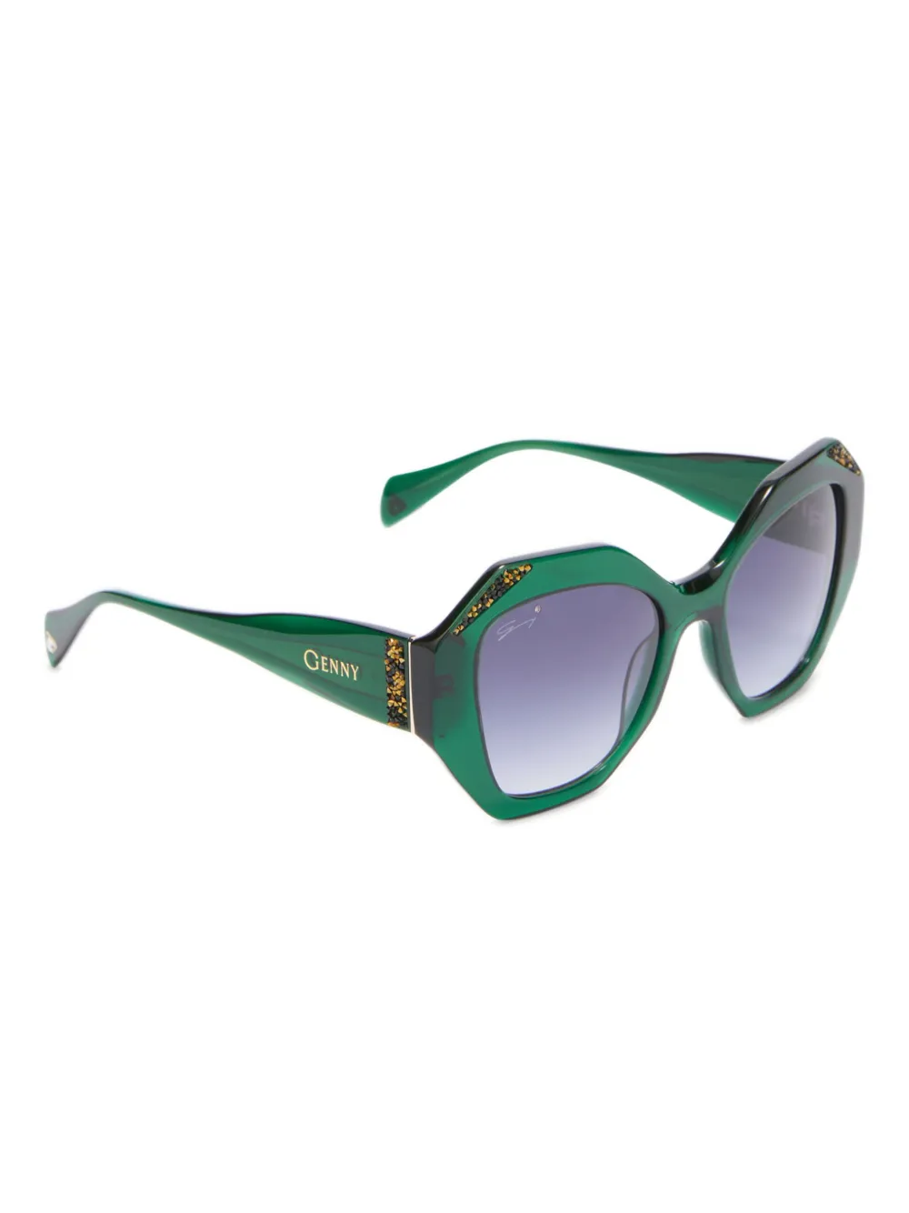 groen glazen met kleurverloop verfraaide zijkanten logodetail breed tempel design Deze bril wordt verkocht met een beschermhoes.
