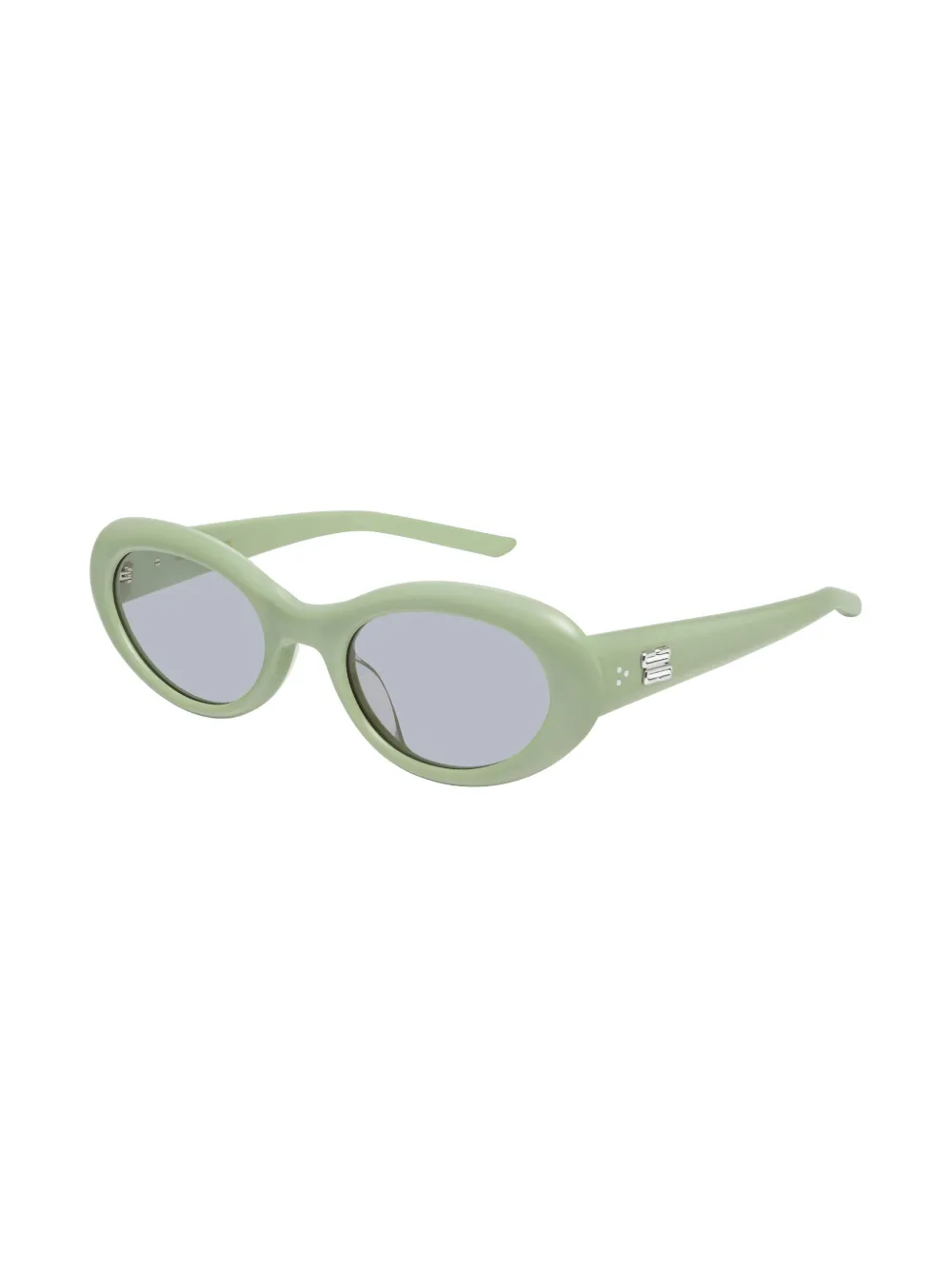 saliegroen acetaat glanzende finish ovaal montuur grijze glazen glazen met UV-bescherming logoplakkaat op het pootje pootjes met gegraveerd logo rechte pootjes gebogen uiteinden Deze bril wordt verkocht met een beschermhoes.