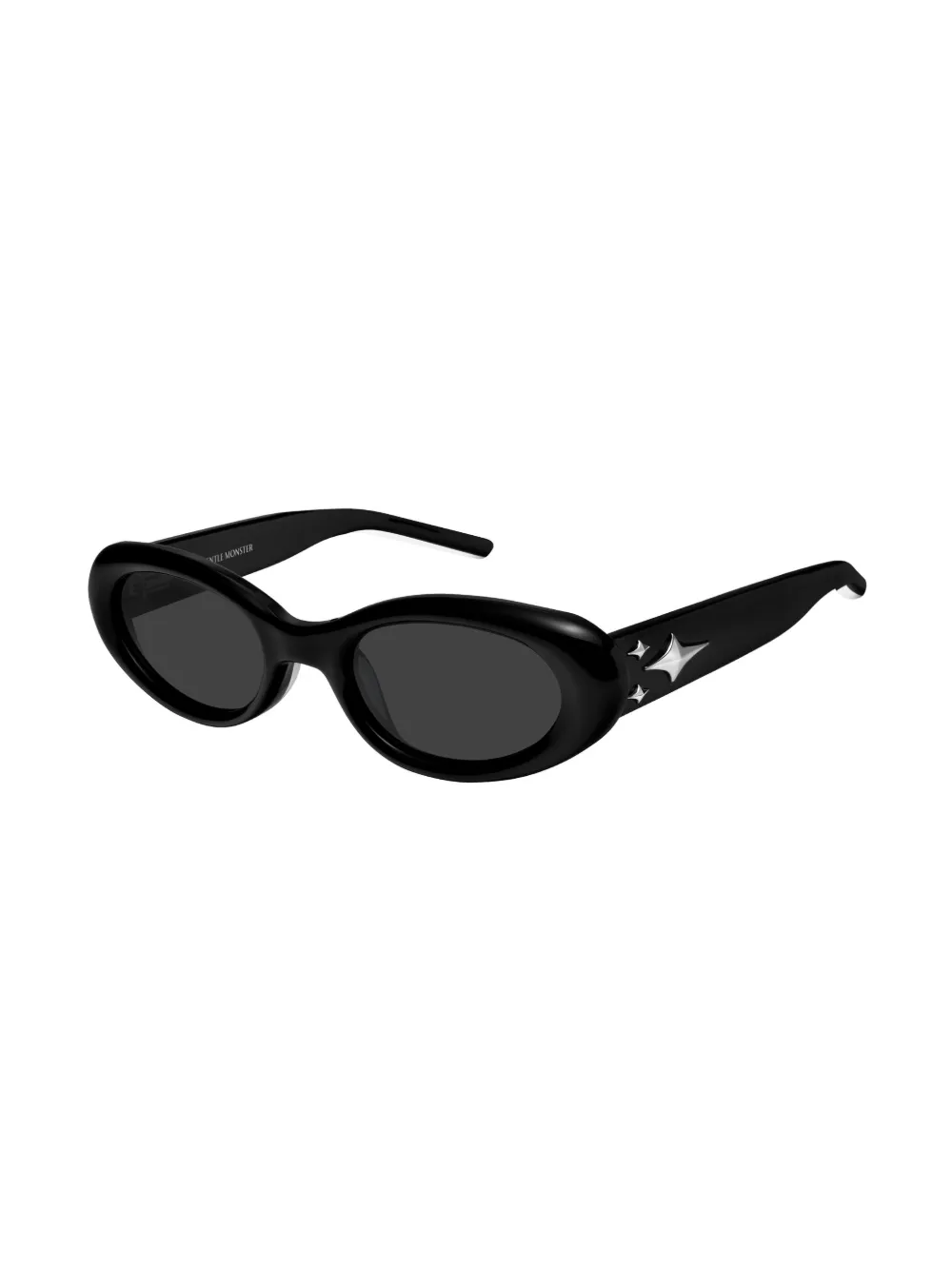 zwart acetaat glanzende finish ovaal montuur grijze glazen glazen met UV-bescherming logoplakkaat op het pootje rechte pootjes gebogen uiteinden Deze bril wordt verkocht met een beschermhoes.