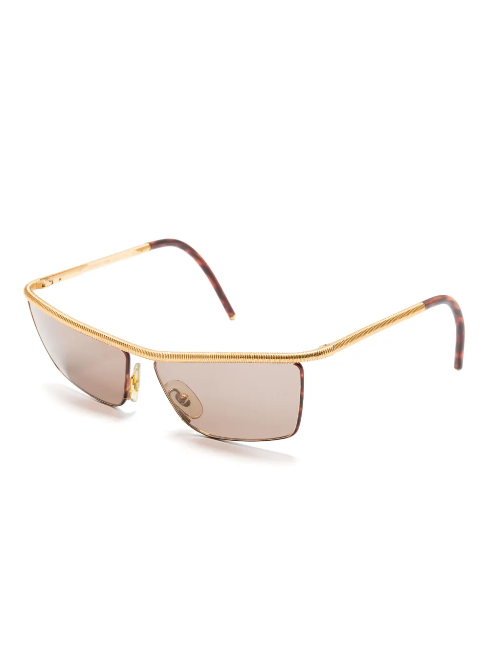 circa 1990 goudkleurig cat-eye montuur gekleurde glazen neuskussentjes rechte pootjes gebogen uiteinden