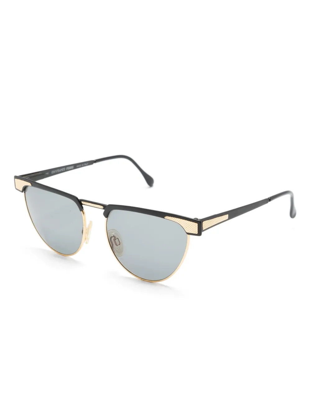 circa 1990 zwart/goudkleurig/grijs cat-eye montuur gekleurde glazen neuskussentjes rechte pootjes gebogen uiteinden