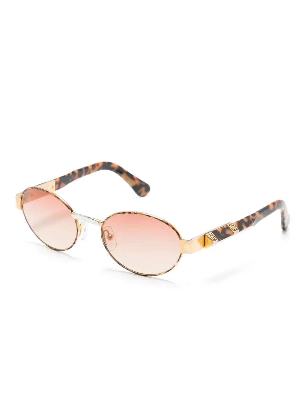 bruin/roze/goudkleurig ovaal montuur glazen met kleurverloop schildpadschild-effect neuskussentjes rechte pootjes gebogen uiteinden