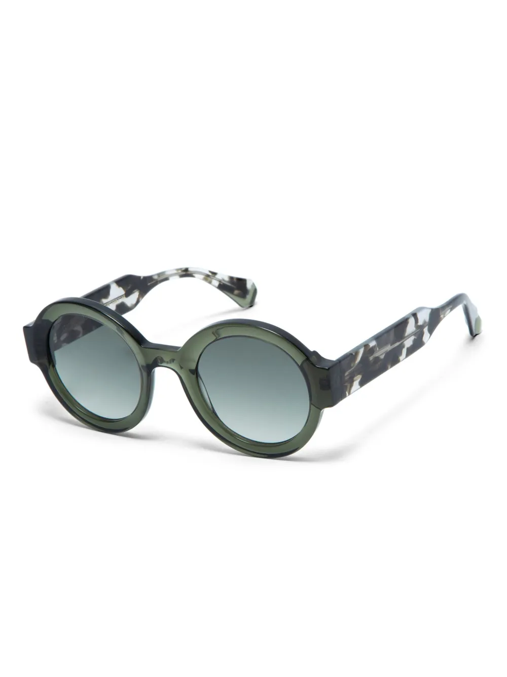 groen schildpadschild-effect rond montuur logodetail UVA-bescherming UVB-bescherming Deze bril wordt verkocht met een beschermhoes.