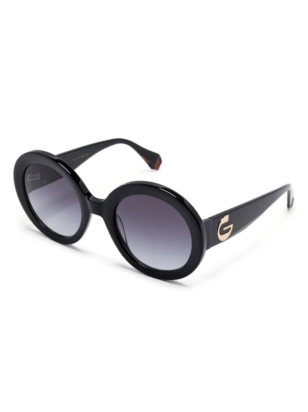 zwart acetaat rond montuur blauwe glazen logoplakkaat op het pootje rechte poten gebogen uiteinden Deze bril wordt verkocht met een beschermhoes.
