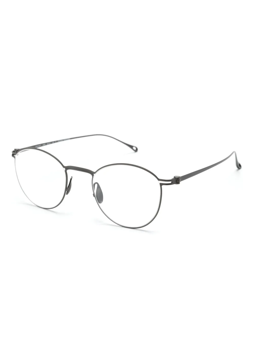 donkergrijs metaal rond montuur doorzichtige glazen neuskussentjes rechte pootjes gebogen uiteinden Alle brillen op FARFETCH worden verkocht met glazen die niet op sterkte zijn. Deze bril wordt verkocht met een beschermhoes.