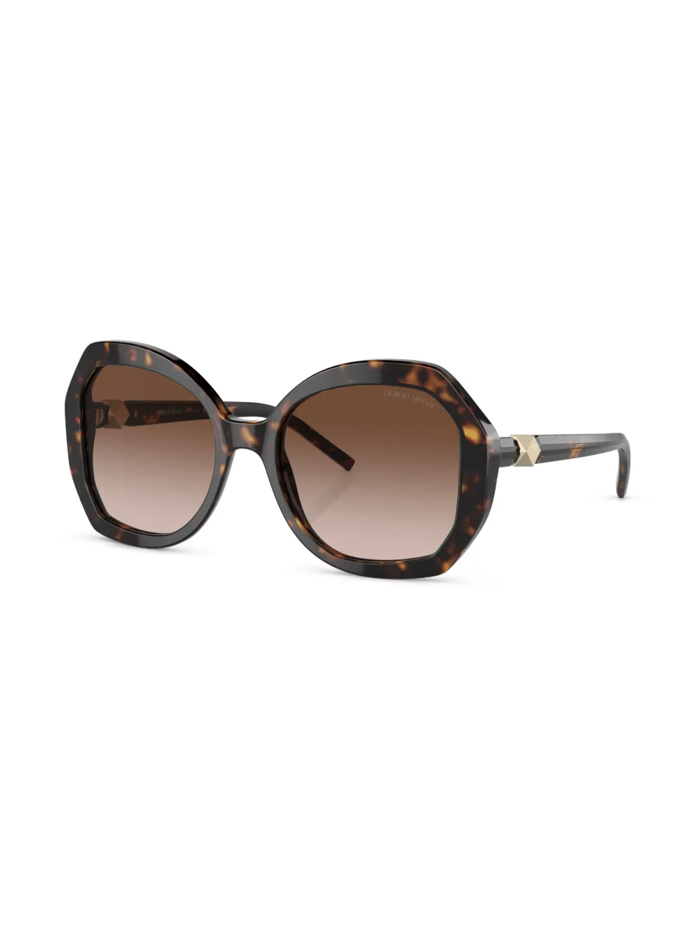Havana bruin, schildpad montuur, oversized montuur, gekleurde glazen, rechte pootjes en gebogen uiteinde. Deze bril wordt verkocht met een beschermhoes..