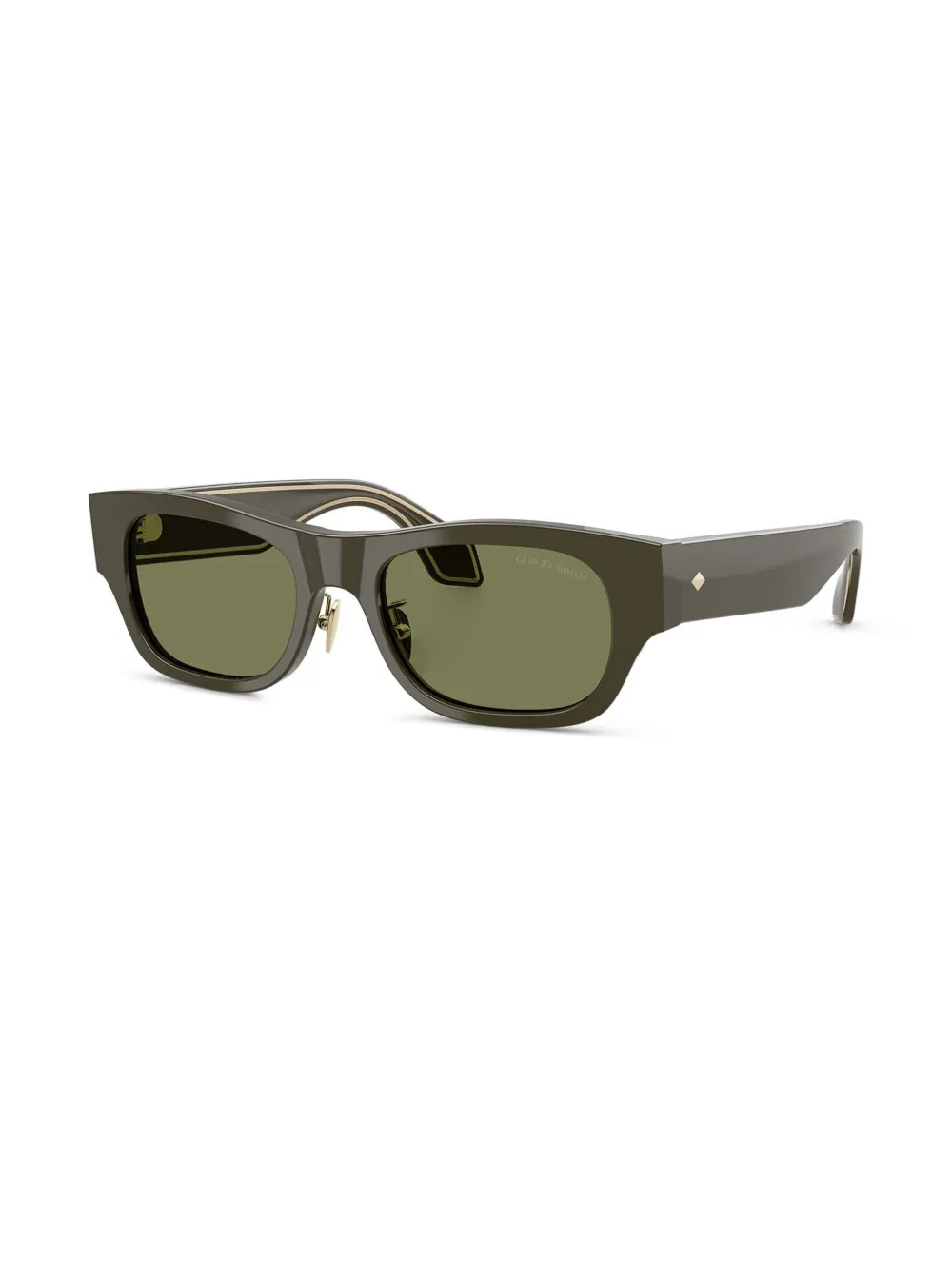 donkergroen acetaat rechthoekig montuur groen getinte glazen neuskussentjes rechte pootjes gebogen uiteinden Deze bril wordt verkocht met een beschermhoes.