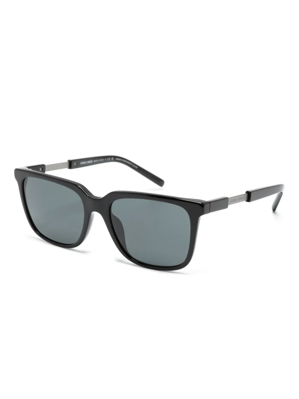 zwart acetaat vierkant montuur grijze glazen logoprint op de brillenpoot rechte pootjes gebogen uiteinde Deze bril wordt verkocht met een beschermhoes.