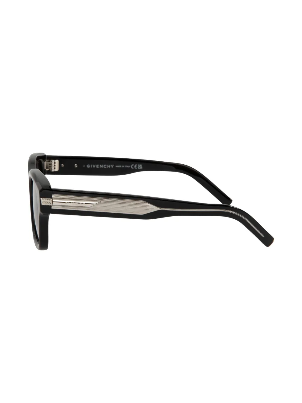 zwart acetaat rechthoekig montuur grijze glazen glazen met UV-bescherming logoplakkaat op de poot rechte pootjes gebogen uiteinden Deze bril wordt verkocht met een beschermhoes.