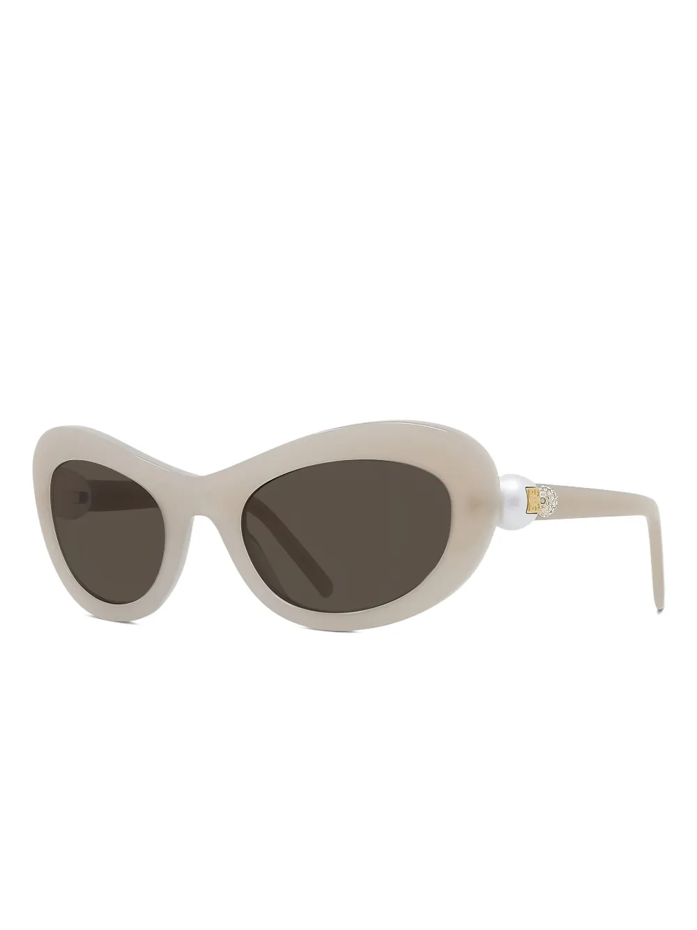 beige geometrisch montuur verfraaid met parels donkere glazen goudkleurig logo details op de tempel Deze bril wordt verkocht met een beschermhoes.