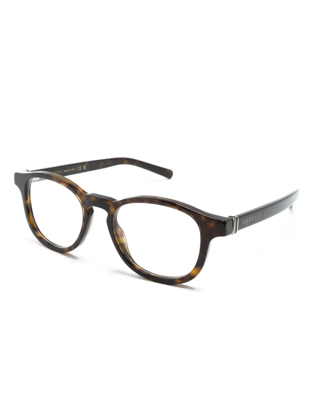 bruin acetaat schildpad montuur rond montuur doorzichtige glazen pootjes met gegraveerd logo gestrekte poten met gebogen uiteinden Deze bril wordt verkocht met een beschermhoes. Alle brillen op FARFETCH worden verkocht met glazen die niet op sterkte zijn.