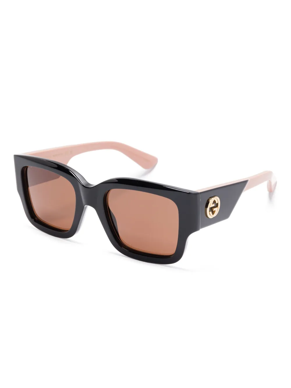 zwart vierkant montuur glazen met UV-bescherming logo lens sticker kenmerkend GG-logo rechte poten met gebogen uiteinden Deze bril wordt verkocht met een beschermhoes.