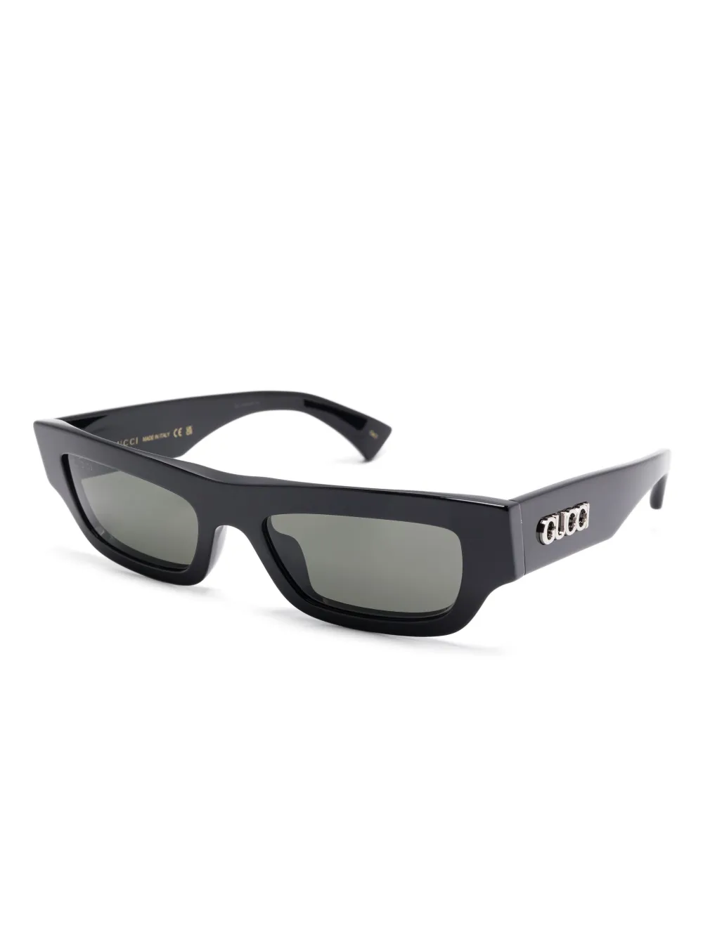zwart glazen met UV-bescherming gebogen uiteinden logoplakkaat op het pootje rechthoekig montuur