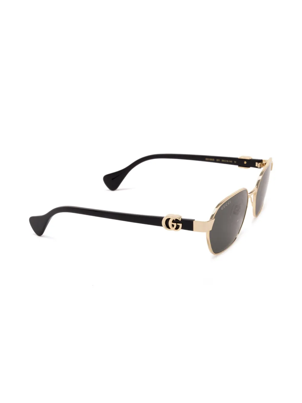 goudkleurig metaal ovaal montuur groen getinte glazen lens sticker glazen met UV-bescherming neuskussentjes rechte pootjes kenmerkend GG plakkaat op de poot gebogen uiteinden Deze bril wordt verkocht met een beschermhoes.