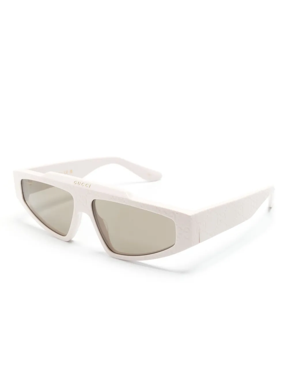 ivoorwit acetaat biker montuur bruine glazen GG monogram-reliëf logoprint op de voorkant geschulpte pootjes gebogen uiteinden Deze bril wordt verkocht met een beschermhoes.