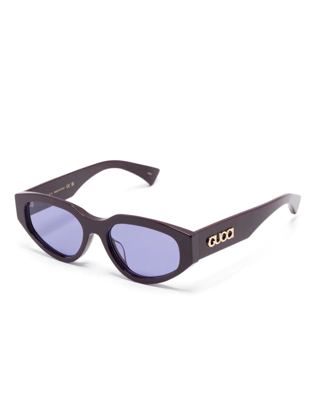 druivenpaars neuskussentjes gebogen uiteinden goudkleurig logo Deze bril wordt verkocht met een beschermhoes.