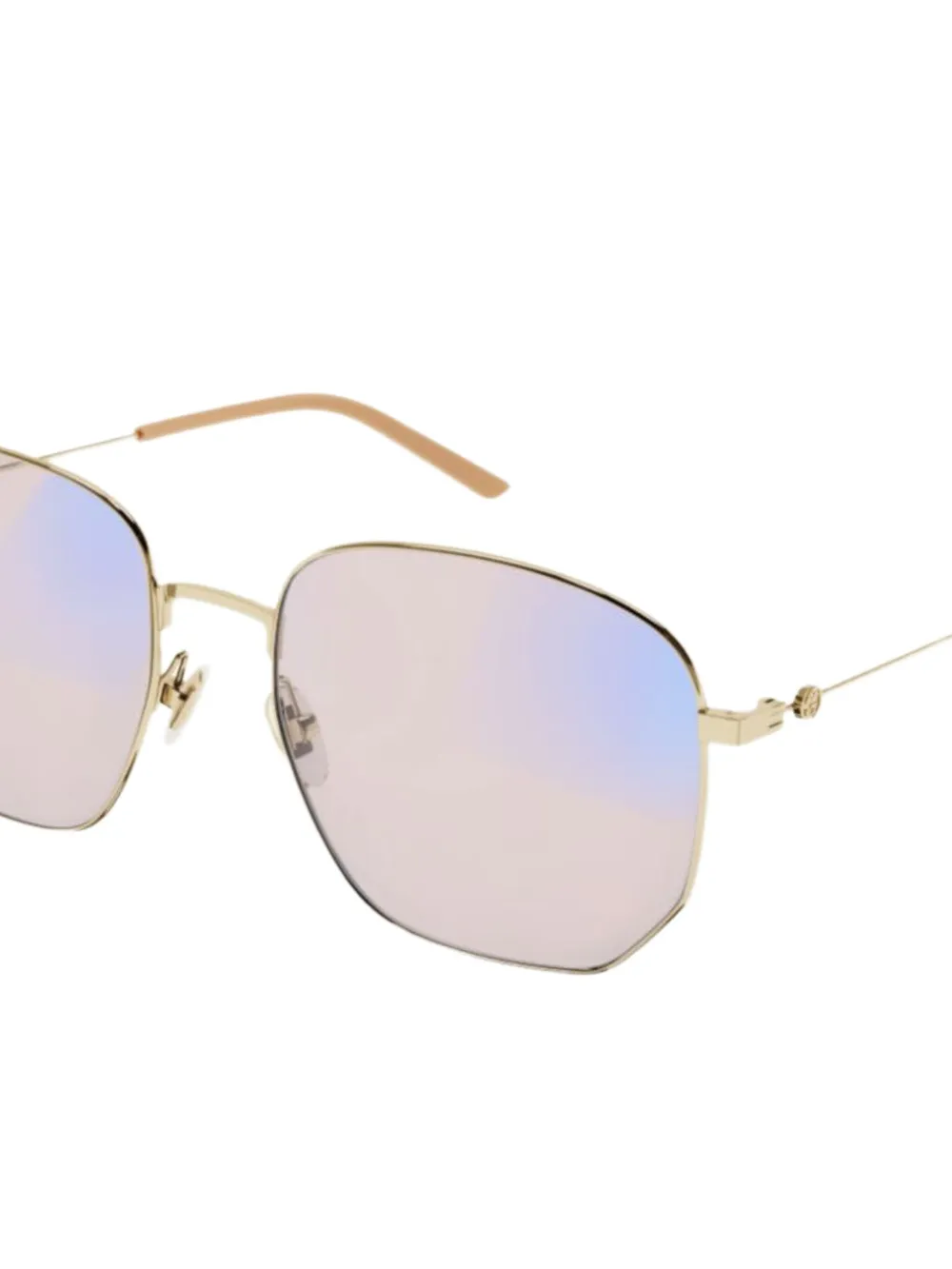 goudkleurig geometrisch montuur gespiegelde glazen neuskussentjes rechte pootjes Deze bril wordt verkocht met een beschermhoes.
