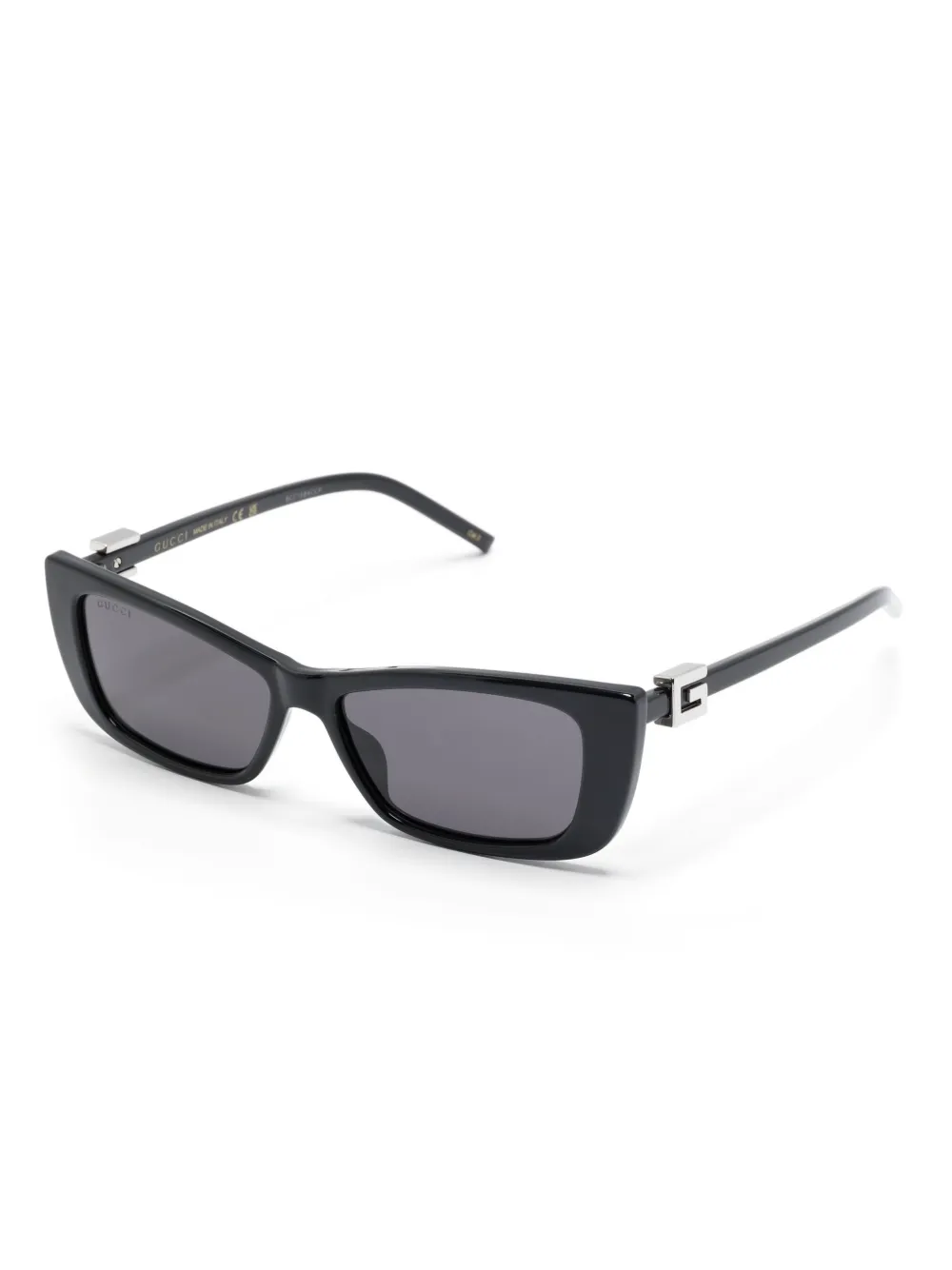 zwart zilverkleurig logoplakkaat cat-eye montuur grijze glazen glazen met UV-bescherming lens sticker rechte pootjes gebogen uiteinden Deze bril wordt verkocht met een beschermhoes.