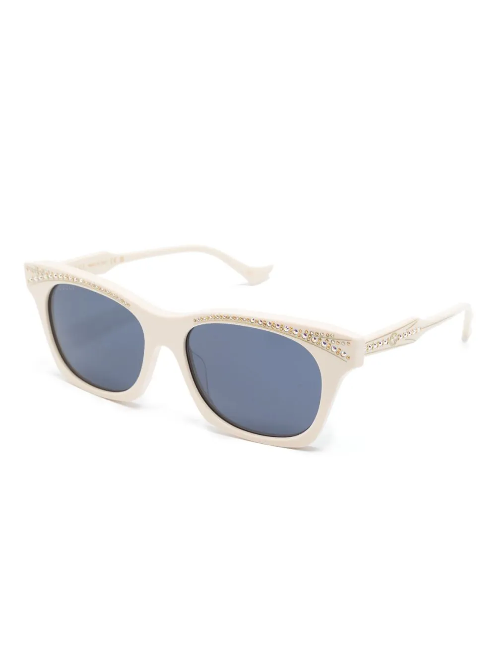 Ivoorwit, gerecycled acetaat, Wayfarer montuur, verfraaid met kristallen, gekleurde glazen, glazen met UV-bescherming, rechte pootjes en kenmerkend GG-logo. Deze bril wordt verkocht met een beschermhoes..