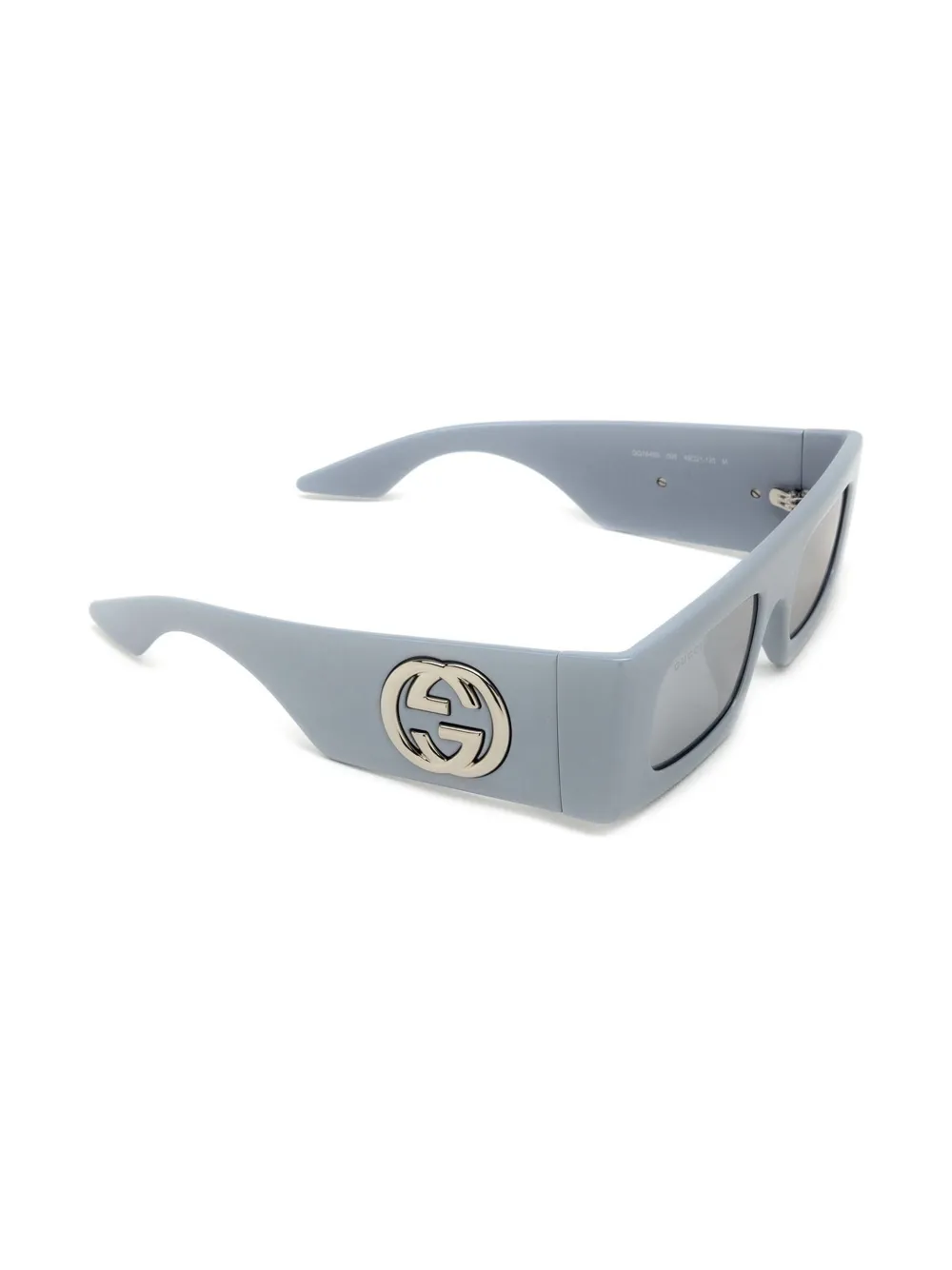 zilverkleurig acetaat rechthoekig montuur grijze glazen gebogen uiteinden pootje met gegraveerd logo Deze bril wordt verkocht met een beschermhoes.