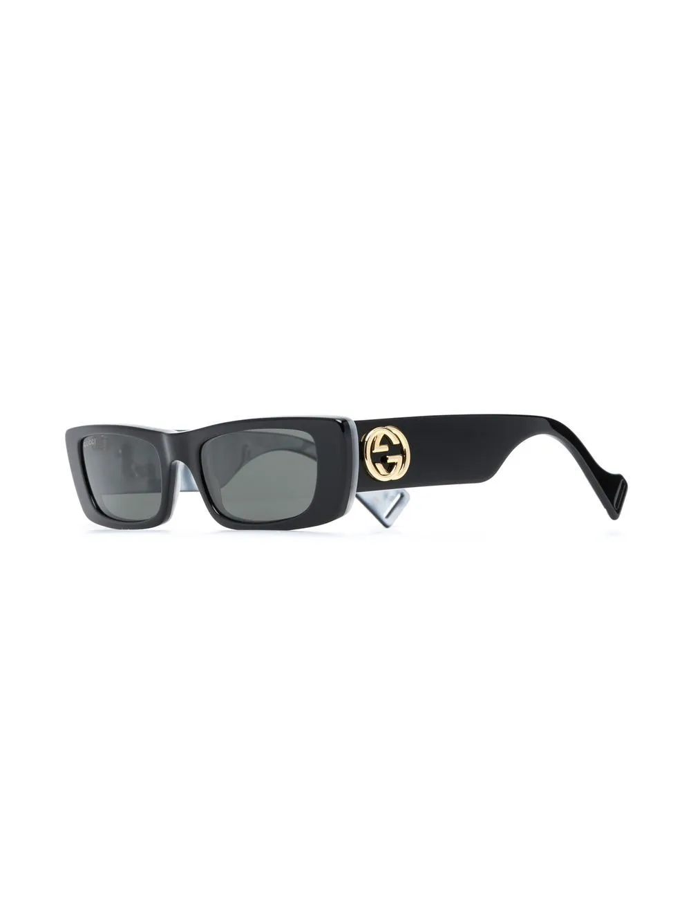 Rechthoekig montuur, gekleurde glazen, goudkleurig logo en gebogen uiteinde. Materiaal: acetaat. We weten dat je ervoor zorgt dat jouw nieuwe aankoop niets overkomt, maar voor de zekerheid zit er een beschermende hoes bij dit item..
