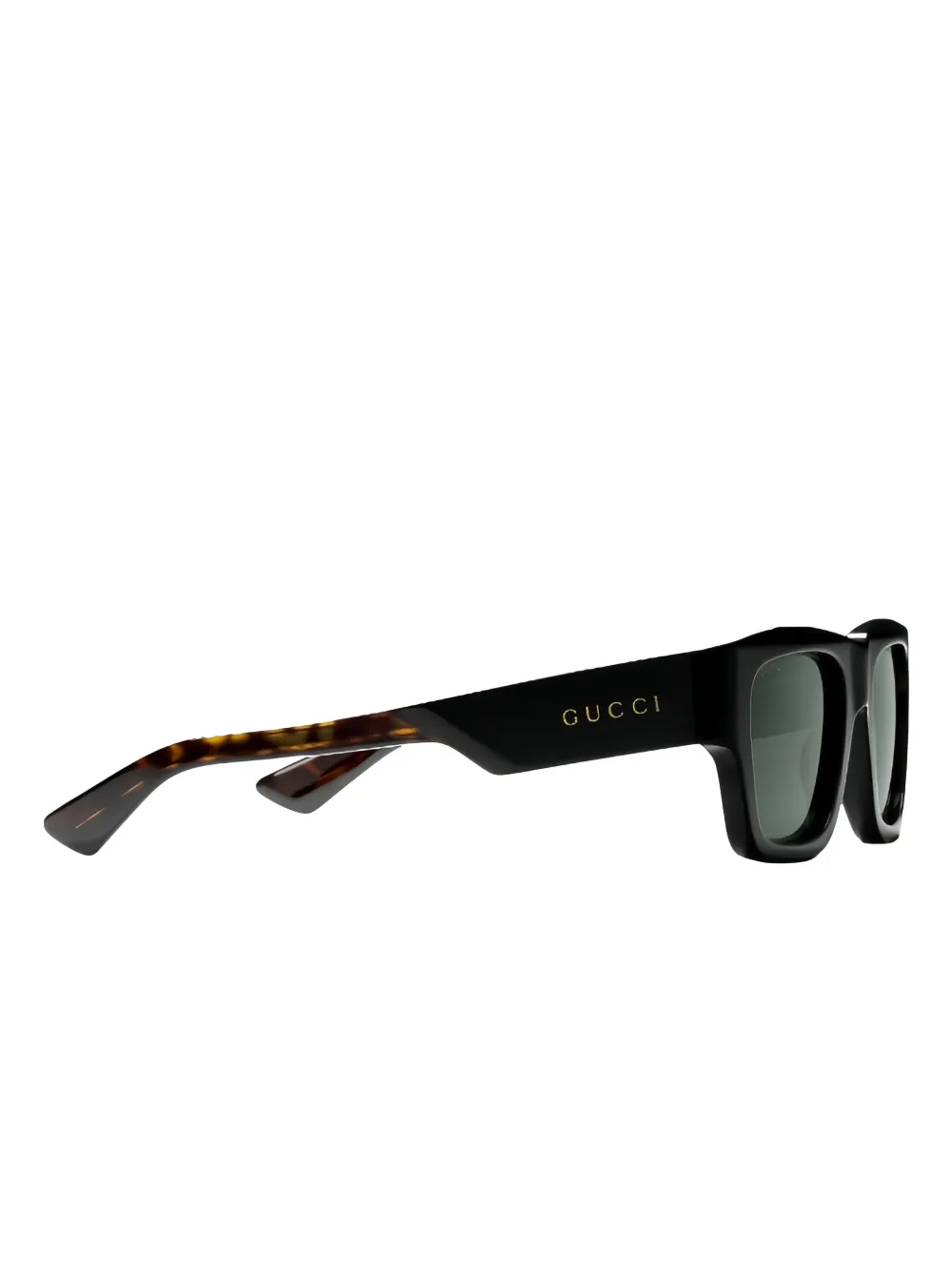 zwart vierkant montuur schildpadschild-design op de pootjes groene glazen logodetail op het pootje Deze bril wordt verkocht met een beschermhoes.