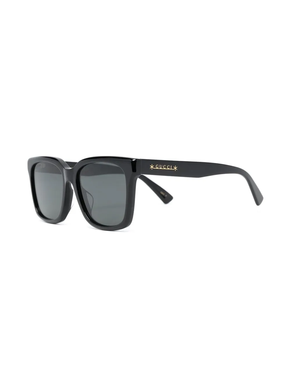 Zwart, acetaat, goudkleurig logo, gekleurde glazen, vierkant montuur, rechte pootjes en gebogen uiteinde. Deze bril wordt verkocht met een beschermhoes.. Alle brillen op FARFETCH worden verkocht met glazen die niet op sterkte zijn..