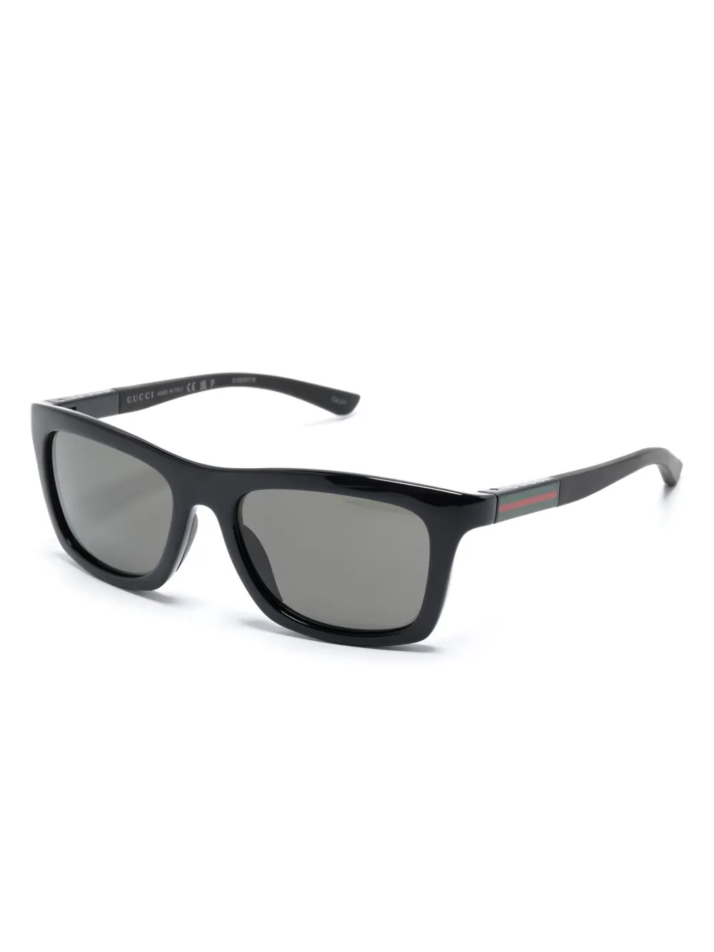 zwart/veelkleurig acetaat rechthoekig montuur grijze glazen kenmerkend Web detail logoprint op de brillenpoot rechte pootjes gebogen uiteinden Deze bril wordt verkocht met een beschermhoes.